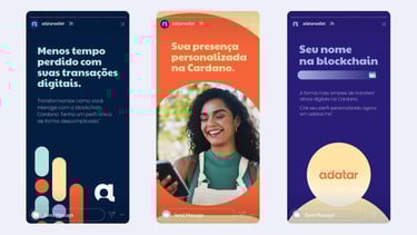 A Adatar emerge como uma solução no ecossistema de blockchain, o nome da empresa é uma construção criativa que combina "ADA" - a moeda da blockchain Cardano - e "Avatar", simbolizando a identidade digital e a personalização delas em ambientes virtuais.