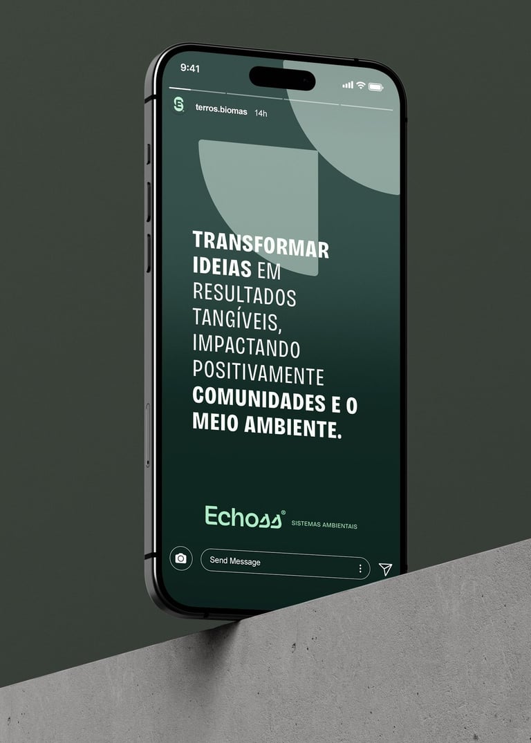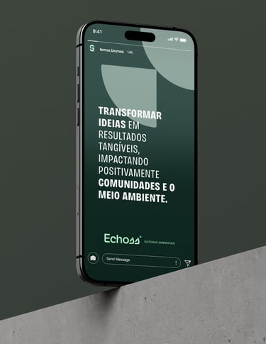 A Echoss emerge como um modelo de negócio em um ecossistema integrado de soluções sustentáveis. A marca se posiciona como uma organização que trata problemas ambientais, cria soluções integradas, e geram valor duradouro para seus clientes e para o meio ambiente.